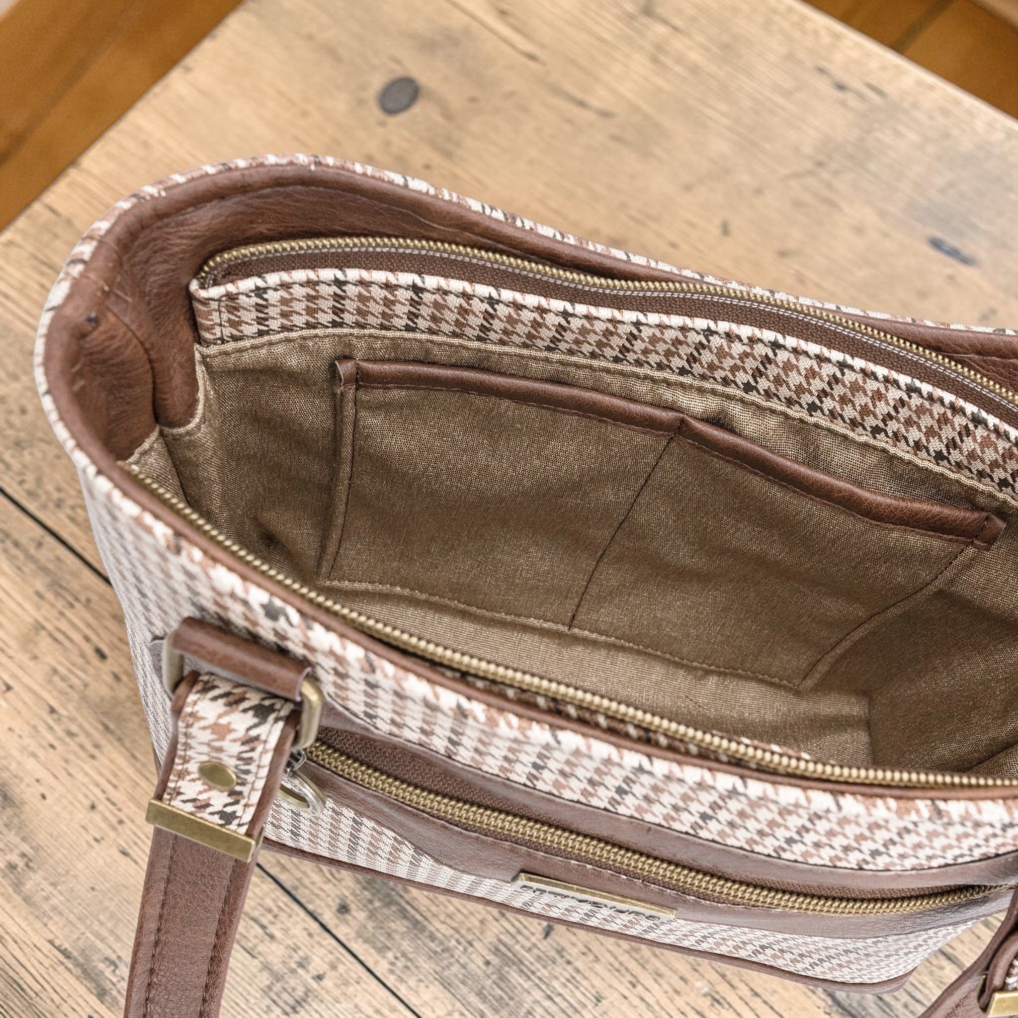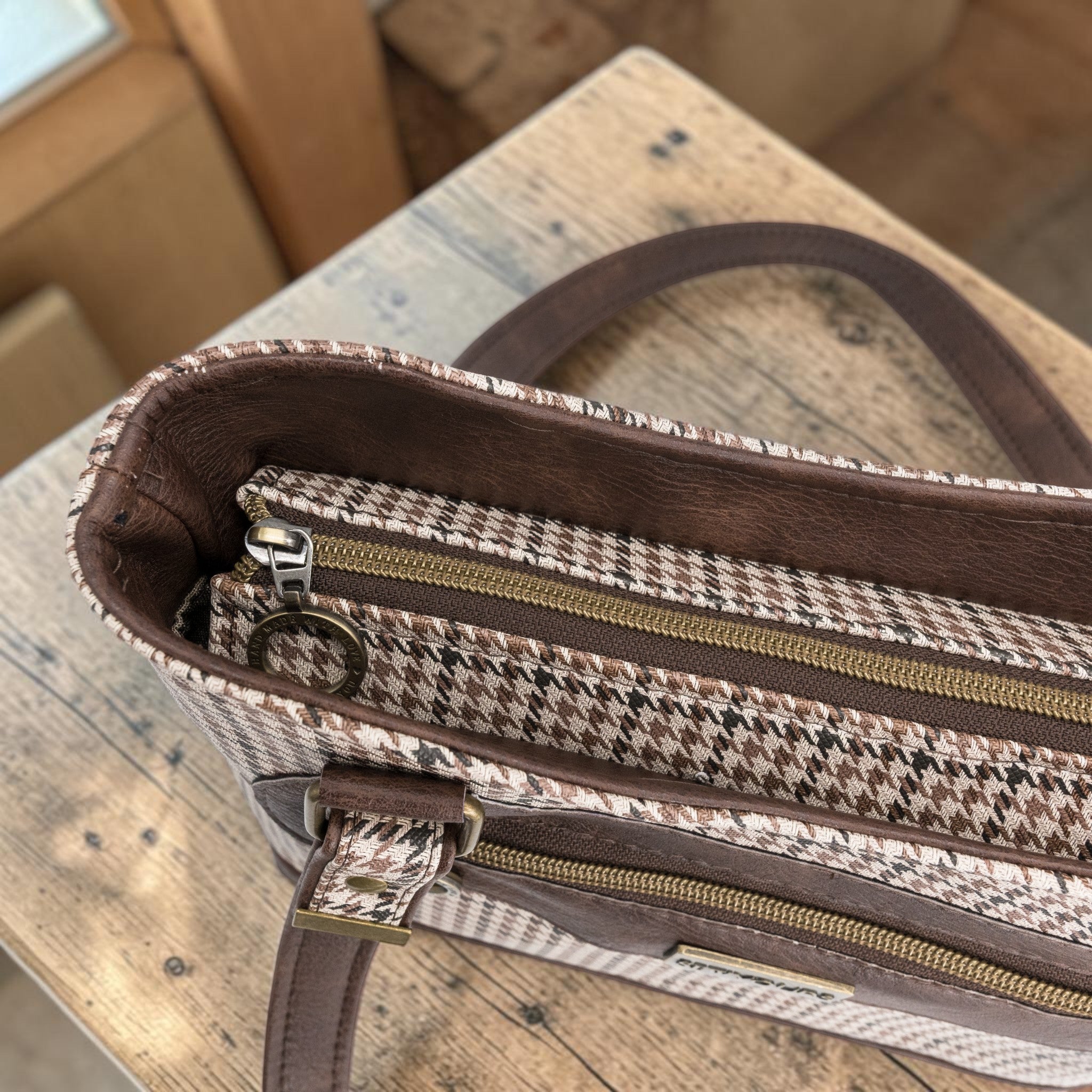 HeritageHound™ Vinyl features a timeless houndstooth pattern that blends classic style with modern bag-making durability. Crisp ivory contrasts with deep ink, sandstone, or charcoal tones to create a bold, heritage-inspired design that looks polished on handbags, totes, backpacks, and accessories. The structured surface and 0.7 mm thickness provide the perfect balance of flexibility and strength, while remaining easy to sew on most domestic machines.