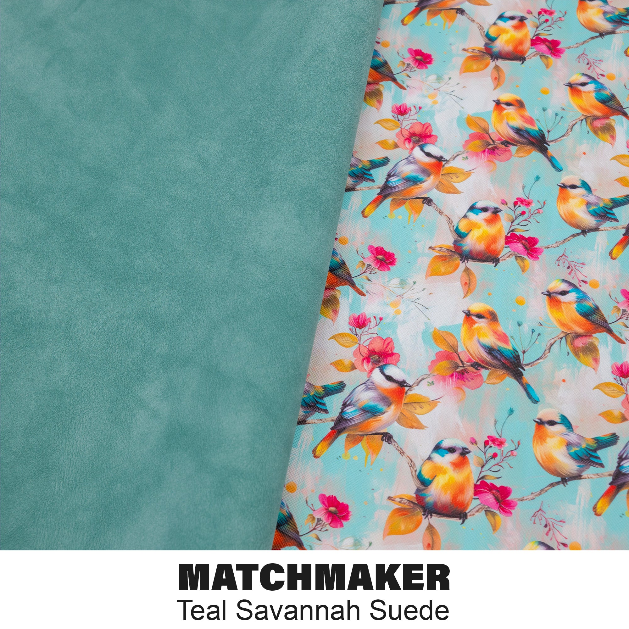 Add bold structure to your next bag project with Painted Perch Saffiano Texture Vinyl. Colorful songbirds and blossoms glow against a soft aqua background for a bright, cheerful look. The crosshatch Saffiano finish adds body, reduces glare, and wipes clean, perfect for spring bags, wallets, and accessories.