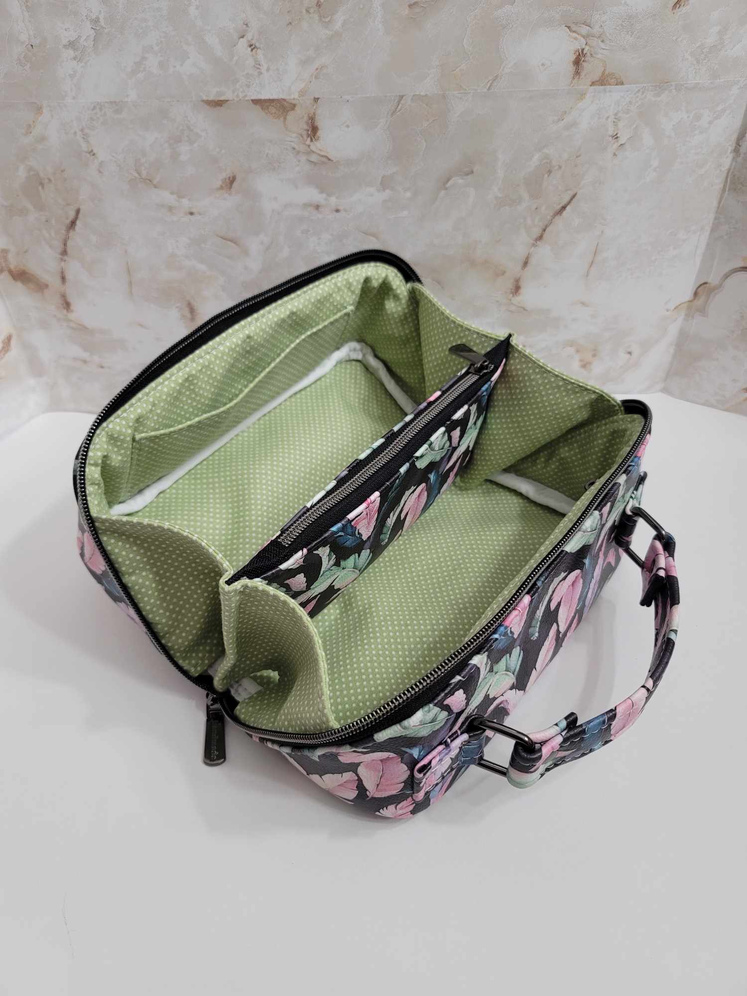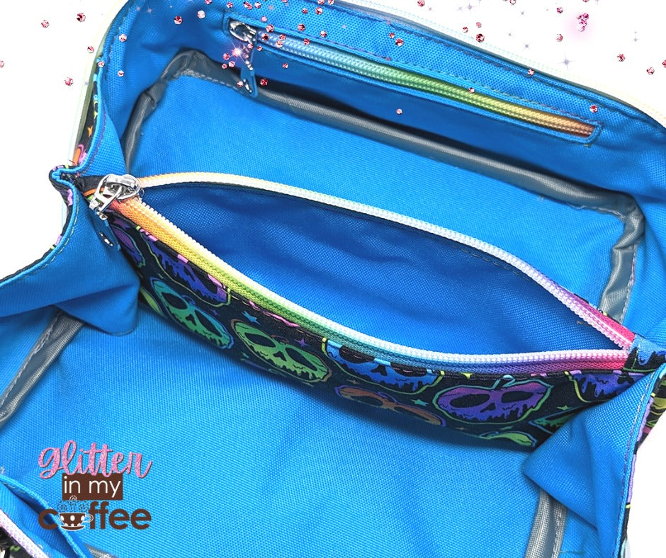 To save on paper and ink hyperlinks are provided within the pattern to free detailed instructions for the zipper pocket and slip pocket which are separate from the Zip-N-Grip PDF pattern. These instructions can be printed and inserted into the Zip-N-Grip pattern, if desired.