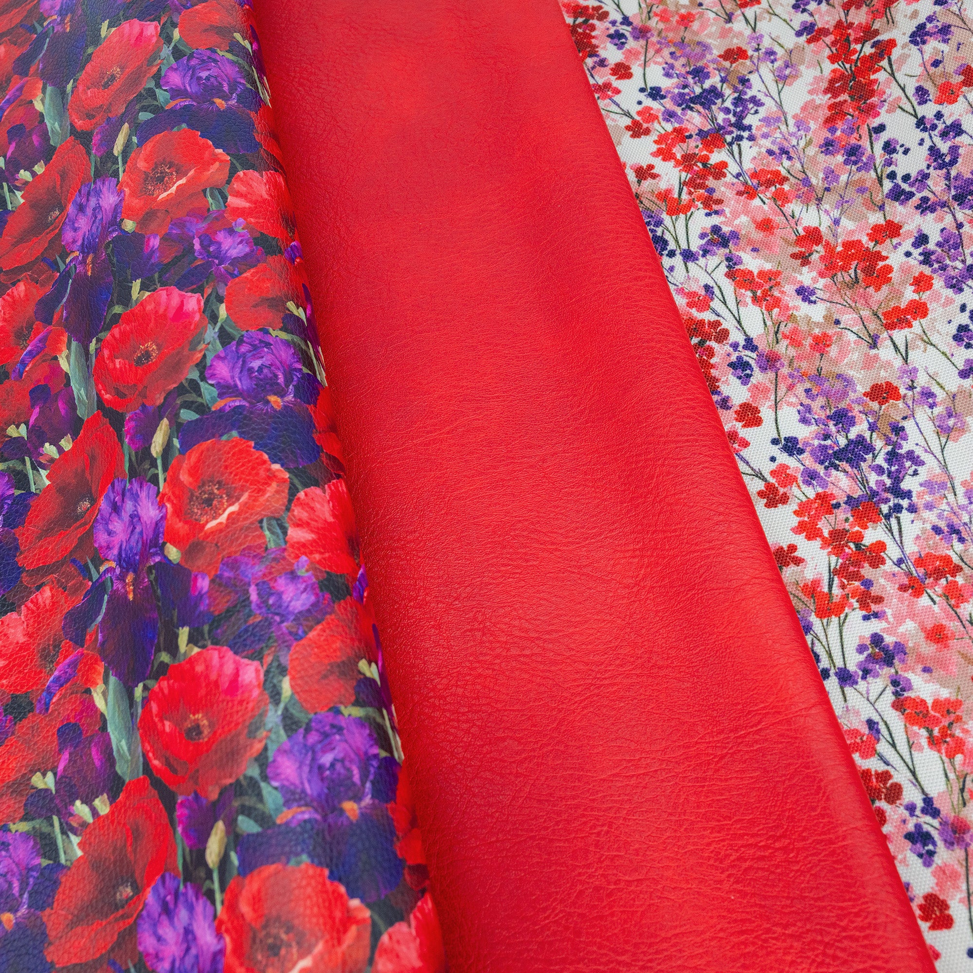 Velvet Poppy Fabric Bundle for bag making combines bold florals with rich purple & red tones for a dramatic, polished finish. This curated bundle pairs a striking poppy printed vinyl with red faux leather and a coordinating water-resistant canvas lining, making it ideal for handbags, totes, and accessories that feel expressive, cohesive, and built to last.