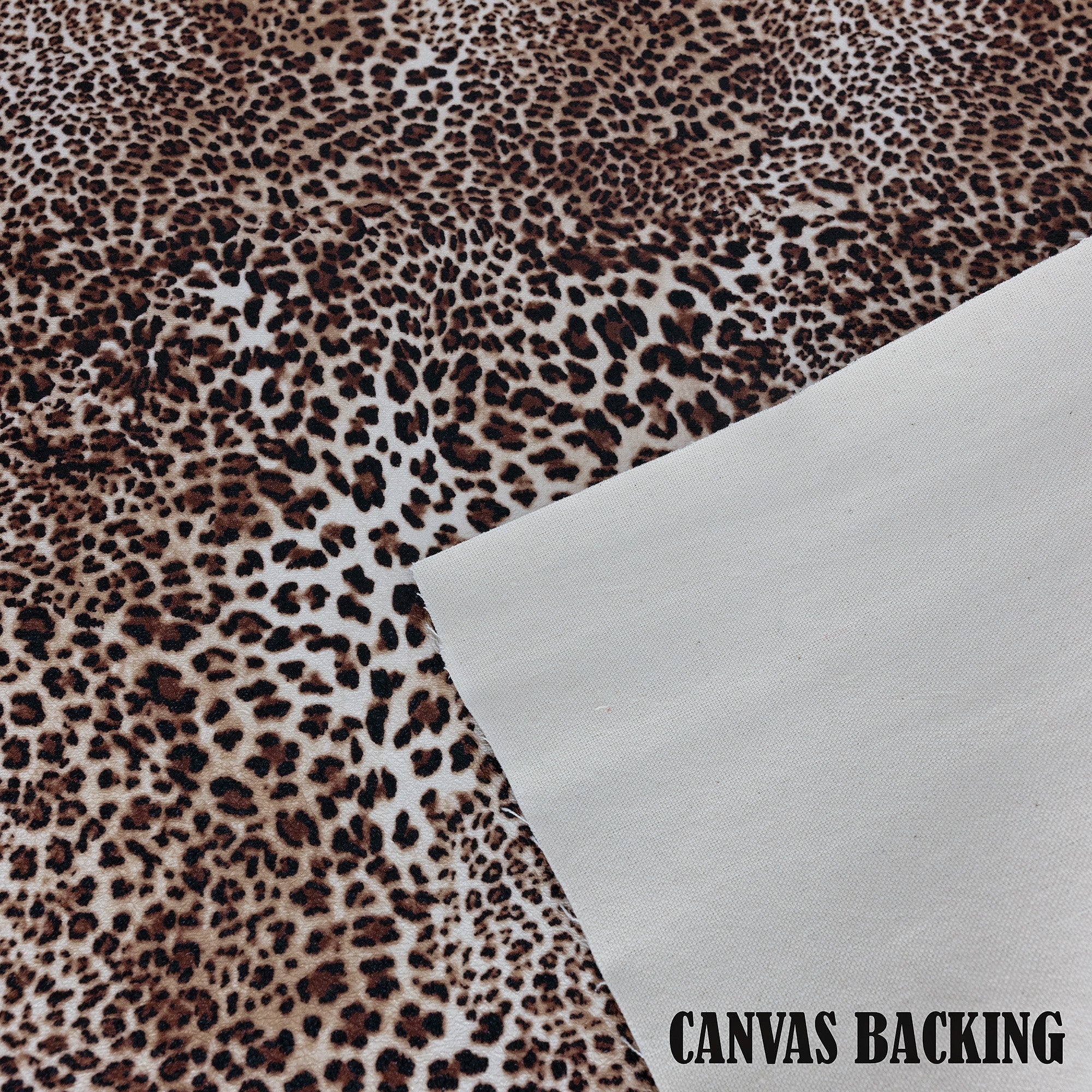 Leopard PU Coated Canvas features a classic leopard print with warm tan, caramel, and black markings on a soft cream base. The PU-coated face has a vinyl-like finish with a subtle leather-style texture, while the woven canvas backing keeps the material flexible instead of stiff. At 0.8 mm thick, it offers light structure and sews easily on most domestic machines. You get the bold look of animal print without the heavy feel. Ideal for tote bags, wallets, straps, and statement exteriors that don’t need a rigid body.